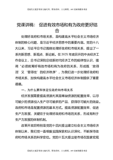 党课讲稿:促进有效市场和有为政府更好结合.docx