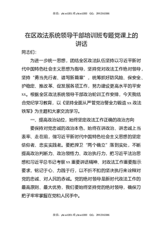 在区政法系统领导干部培训班专题党课上的讲话.docx