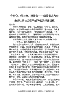 守初心、保本色、担使命——纪委书记为全市派驻纪检监察干部所做的党课讲稿.docx