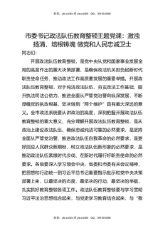 市委书记政法队伍教育整顿主题党课:激浊扬清,培根铸魂做党和人民忠诚卫士.docx