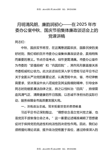 月明清风朗,廉韵润初心——在2025年市委办公室中秋、国庆节前集体廉政谈话会上的党课讲稿.docx
