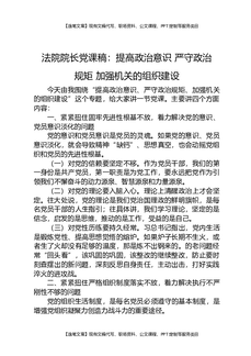 法院院长党课稿:提高政治意识,严守政治规矩,加强机关的组织建设.docx