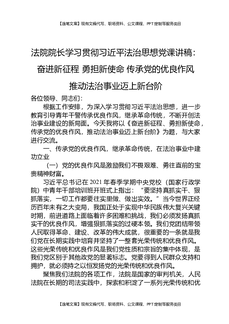 法院院长学习贯彻习近平法治思想党课讲稿:奋进新征程,勇担新使命,传承党的优良作风推动法治事业迈上新台阶.docx