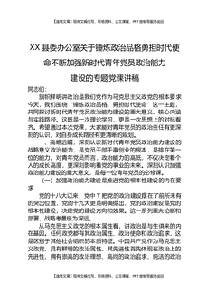 XX县委办公室关于锤炼政治品格,勇担时代使命,不断加强新时代青年党员政治能力建设的专题党课讲稿.docx