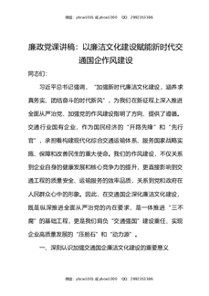廉政党课讲稿:以廉洁文化建设赋能新时代交通国企作风建设.docx
