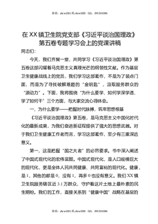 在XX镇卫生院党支部《总书记谈治国理政》第五卷专题学习会上的党课讲稿.docx