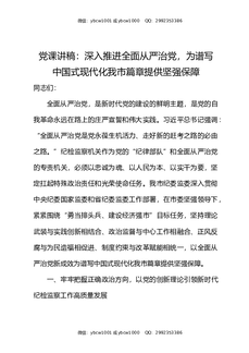 党课讲稿:深入推进全面从严治党,为谱写中国式现代化我市篇章提供坚强保障.docx
