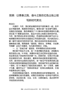 党课:以青春之我、奋斗之我在红色土地上续写新时代荣光.docx