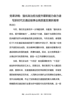 党课讲稿:强化政治担当提升履职能力奋力谱写新时代交通运输事业高质量发展新篇章.docx
