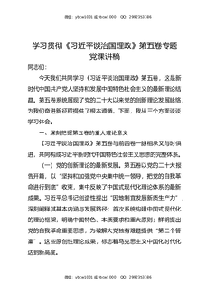 第四季度党员大会上关于《习近平谈治国理政》第五卷的党课讲稿.docx