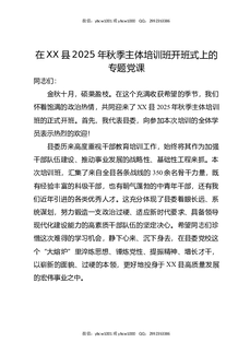 在XX县2025年秋季主体培训班开班式上的专题党课.docx