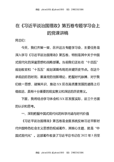 在《总书记谈治国理政》第五卷专题学习会上的党课讲稿.docx