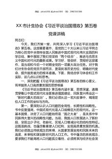 XX市计生协会《习近平谈治国理政》第五卷党课讲稿.docx