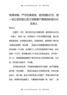 党课讲稿:严守纪律底线,规范用权行为,做一名让组织放心员工信赖客户满意的和各分行负责人.docx