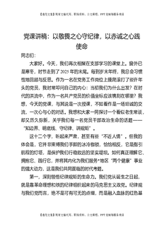党课讲稿:以敬畏之心守纪律,以赤诚之心践使命.docx