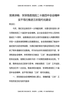 党课讲稿:学深悟透党的二十届四中全会精神实干笃行推进三农现代化建设.docx