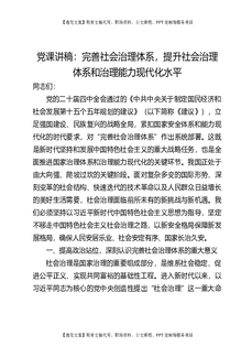 党课讲稿:完善社会治理体系,提升社会治理体系和治理能力现代化水平.docx