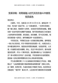 党课讲稿:将青春融入时代洪流在奋斗中擦亮党员底色.docx