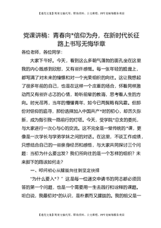 党课讲稿:青春向党信仰为舟,在新时代长征路上书写无悔华章.docx