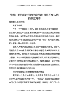 党课:拥抱新时代的使命召唤书写不负人民的藏蓝青春.docx