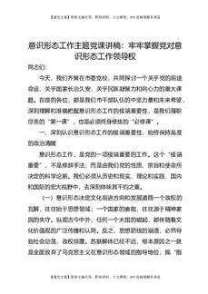 意识形态工作主题党课讲稿:牢牢掌握党对意识形态工作领导权.docx