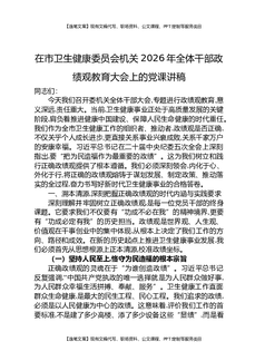 在市卫生健康委员会机关2026年全体干部政绩观教育大会上的党课讲稿.docx