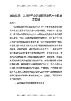 廉政党课:以笃行不怠的清醒坚定筑牢节日廉洁防线.docx
