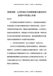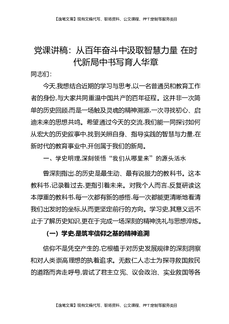 党课讲稿:从百年奋斗中汲取智慧力量在时代新局中书写育人华章.docx