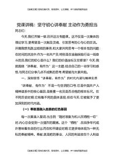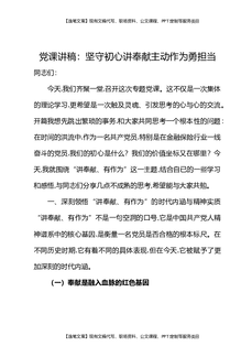 党课讲稿:坚守初心讲奉献,主动作为勇担当.docx