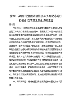 党课:以磐石之基固本强信念,以如磐之志笃行担使命,以清泉之源永续葆纯洁.docx