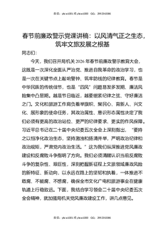 春节前廉政警示党课讲稿:以风清气正之生态,筑牢文旅发展之根基.docx