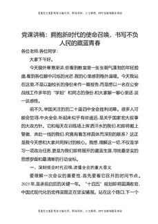 党课讲稿:拥抱新时代的使命召唤,书写不负人民的藏蓝青春.docx