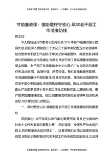 节前廉政党课:慎始敬终守初心,筑牢老干部工作清廉防线.docx