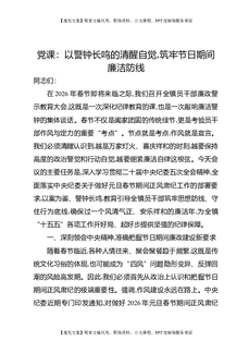 以清醒坚定的政治自觉,筑牢廉洁机关的思想根基——在2026年春节前廉政警示教育大会上的党课讲稿.docx