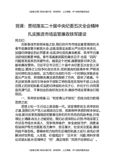 党课:贯彻落实二十届中央纪委五次全会精神,扎实推进市场监管廉政铁军建设.docx
