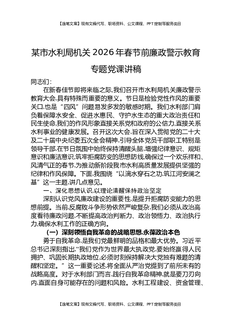 某市水利局机关2026年春节前廉政警示教育专题党课讲稿.docx