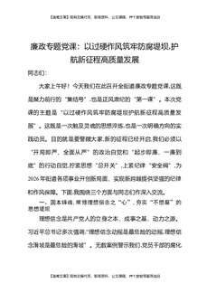 廉政专题党课:以过硬作风筑牢防腐堤坝,护航新征程高质量发展.docx