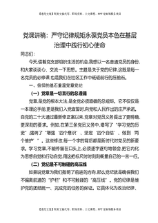 党课讲稿:严守纪律规矩永葆党员本色在基层治理中践行初心使命.docx