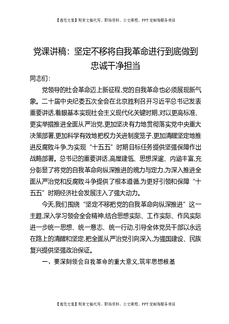 党课讲稿:坚定不移将自我革命进行到底做到忠诚干净担当.docx