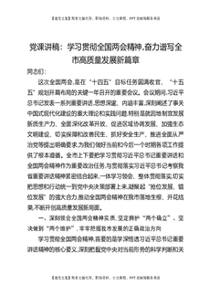 党课讲稿:学习贯彻全国两会精神,奋力谱写全市高质量发展新篇章.docx