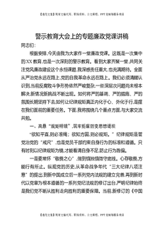 警示教育大会上的专题廉政党课讲稿.docx