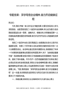 专题党课:深学笃悟全会精神,奋力开启健康征程.docx