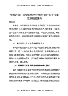 党课讲稿:深学细悟全会精神,笃行实干扛牢能源报国使命.docx