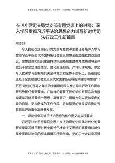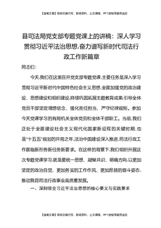 在XX县司法局党支部专题党课上的讲稿:深入学习贯彻总书记法治思想,奋力谱写新时代司法行政工作新篇章.docx