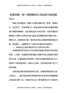 党课讲稿:统一思想聚共识,纯正风气促发展.docx