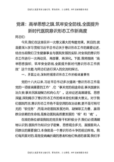 党课:高举思想之旗,筑牢安全防线,全面提升新时代医院意识形态工作新高度.docx
