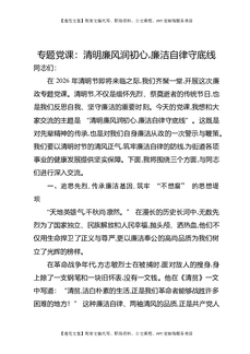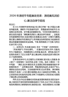 2026年清明节专题廉政党课:清明廉风润初心,廉洁自律守底线.docx