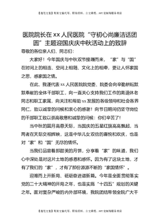 医院院长在XX人民医院“守初心尚廉洁话团圆”主题迎国庆庆中秋活动上的致辞.docx