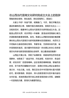 在山西当代晋商文化研究院成立大会上的致辞.docx