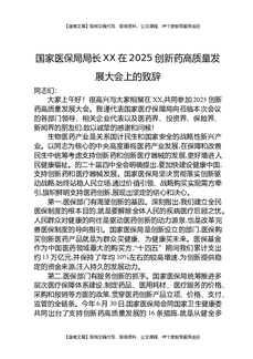 国家医保局局长XX在2025创新药高质量发展大会上的致辞.docx